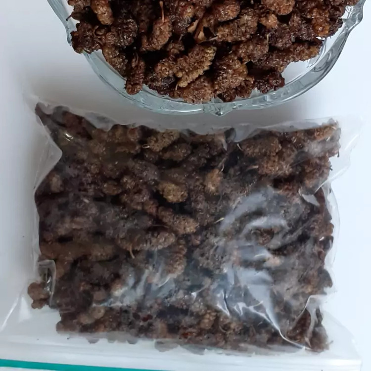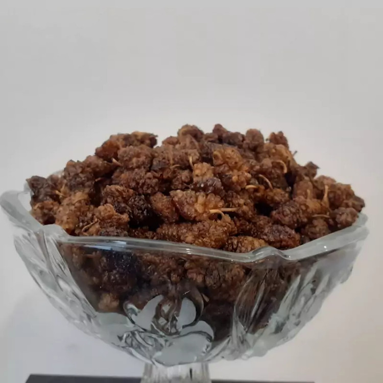 توت خشک رو به صورت دست چین چیده و در سایه خشک کردیم به صورتی که زیاد خشک نشه و نرمی داشته باشه و بعد تو یخچال نگه داری کردیم که طعم و مزه توت رو حفظ کرده کاملا طبیعی